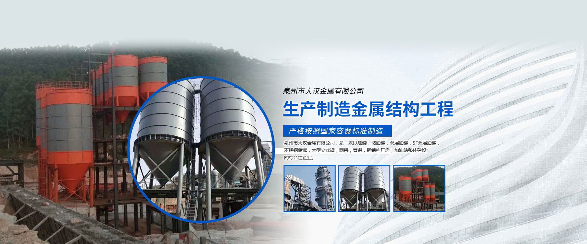 泉州市大漢金屬有限公司,是一家以油罐、儲(chǔ)油罐、雙層油罐、SF雙層油罐、不銹鋼儲(chǔ)罐、大型立式罐、網(wǎng)架、管道、鋼結(jié)構(gòu)廠房、加油站整體建設(shè)的綜合性企業(yè)。本公司以技術(shù)人員、施工經(jīng)驗(yàn)豐富的工程隊(duì)、自動(dòng)化設(shè)備、擁有鋼結(jié)構(gòu)建筑、螺栓球網(wǎng)架設(shè)計(jì)安裝技術(shù)力量,嚴(yán)格按照國(guó)家容器標(biāo)準(zhǔn)制造,是一家產(chǎn)品開(kāi)發(fā)并生產(chǎn)各種壓力容器和制造金屬結(jié)構(gòu)工程,化工石油工程安裝的大型企業(yè)。近多年來(lái),以質(zhì)量穩(wěn)定、客戶(hù)至上、信譽(yù)為本,以科技求發(fā)展,贏得廣大客戶(hù)支持與信賴(lài)。